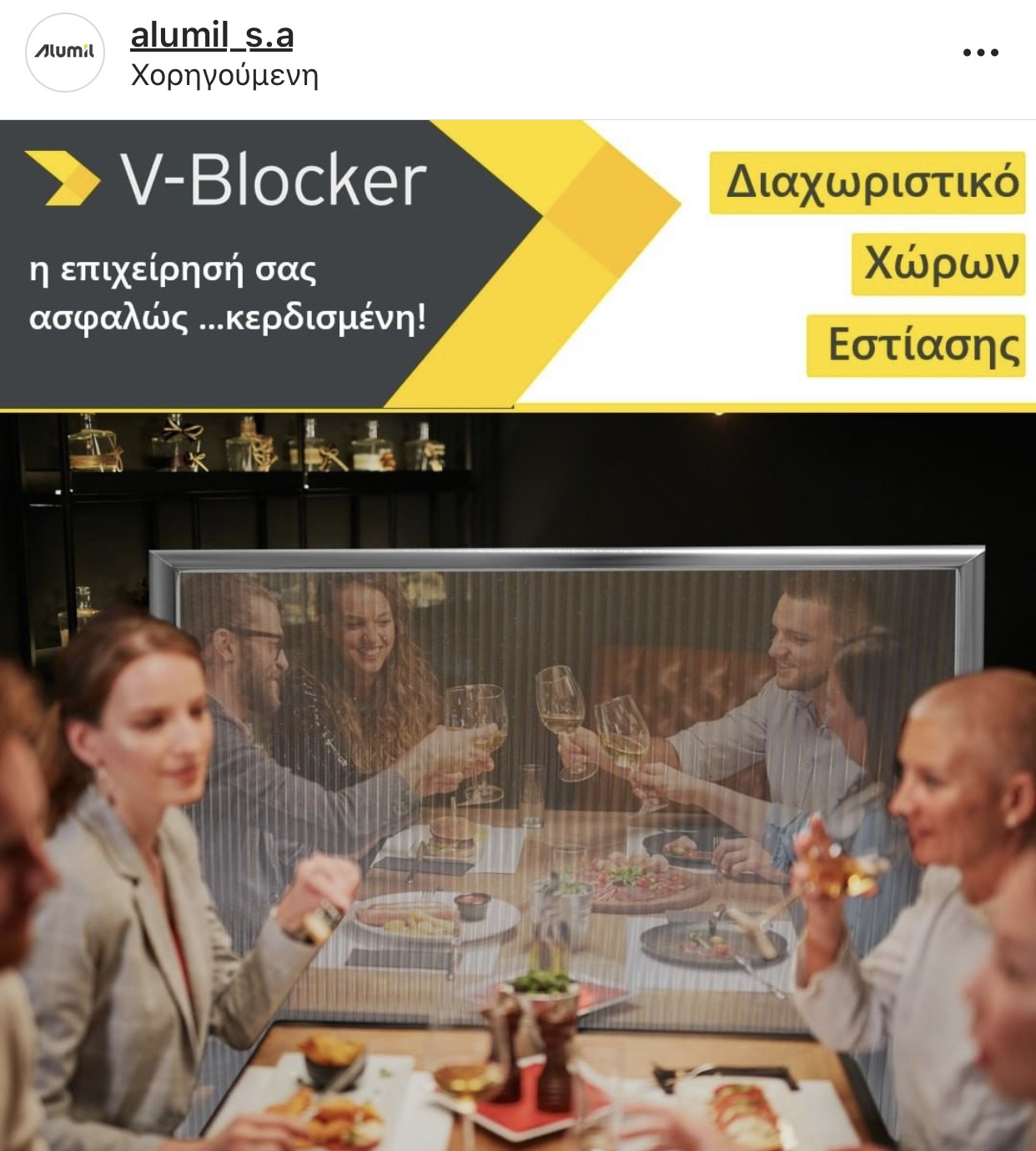 Η εμπειρία της ALUMIL στον σχεδιασμό διαχωριστικών συστημάτων για επαγγελματικούς χώρους οδήγησε στην ανάπτυξη ενός ολοκληρωμένου συστήματος που διασφαλίζει τους κανόνες υγιεινής και ασφάλειας, ενώ ταυτόχρονα μειώνει τις αποστάσεις μεταξύ των τραπεζιών.