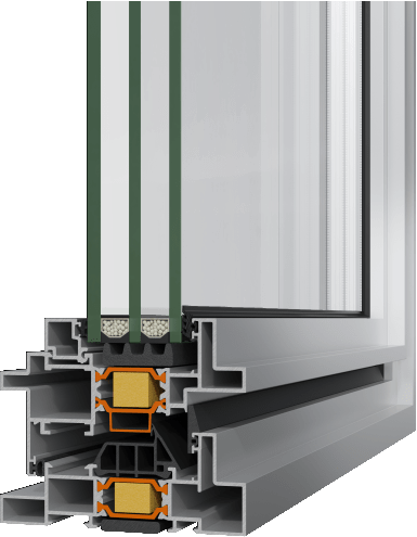 - Ιδανικό για ανακαινίσεις παλαιών χαλύβδινων κουφωμάτων, συνδυάζοντας την ιδιαίτερη εμφάνιση τους με όλα τα συγκριτικά πλεονεκτήματα του θερμομονωτικού συστήματος αλουμινίου.