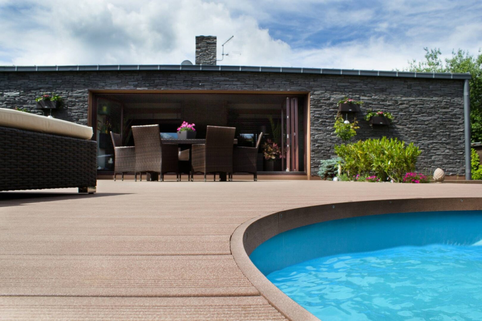To WOODEE αποτελεί την πρόταση της εταιρίας στα συνθετικά υλικά για δάπεδα τύπου Deck, η οποία χαρακτηρίζεται από πάρα πολύ υψηλή ποιότητα και ευρεία ποικιλία λύσεων, με 5 διαφορετικές επιφάνειες απομίμησης ξύλου σε διάφορα πλάτη και σε 9 αποχρώσεις.