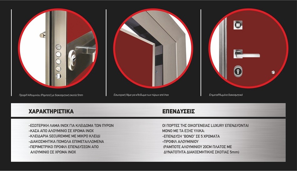 Η νέα μοντέρνα σειρά θωρακισμένων πορτών Luxury ξεχωρίζει για τηνπολυτέλεια και τις καινοτομίες της.