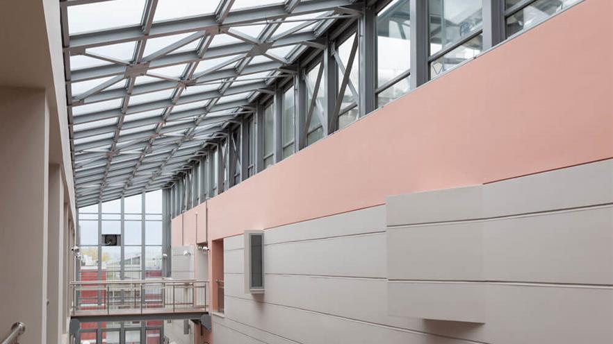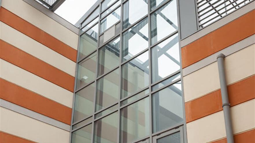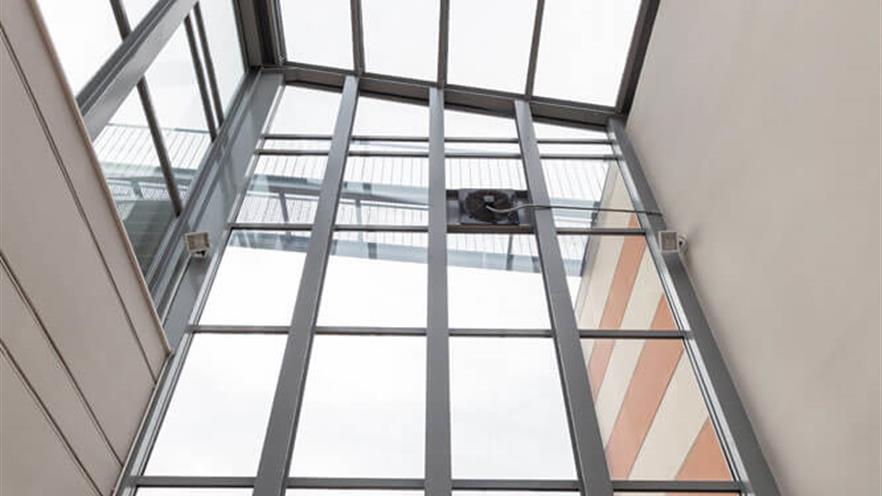 - Στο υαλοπέτασμα συνεργάζονται θερμομονωτικές πόρτες από άλλα συστήματα της Alumil.