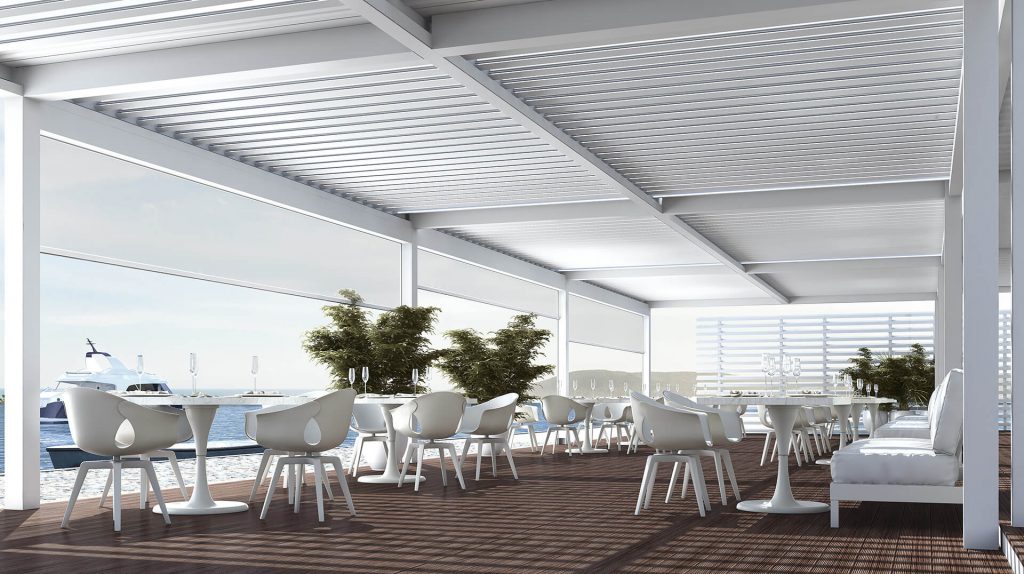 Τα συστήματα πέργκολας χαρακτηρίζονται από εξαιρετική αντοχή και καλύπτουν εντυπωσιακά μεγάλες επιφάνειες – έως και 50 m² – με μόνο ένα πλαίσιο. Ταυτόχρονα, παρουσιάζουν μεγάλη ανθεκτικότητα σε πολύ ισχυρούς ανέμους και έντονες χιονοπτώσεις. Το σύστημα προσφέρει ποικιλία επιλογών κατασκευής, καλύπτοντας κάθε ανάγκη, σε έργα ξενοδοχειακών μονάδων, εστιατορίων και εμπορικών χώρων.