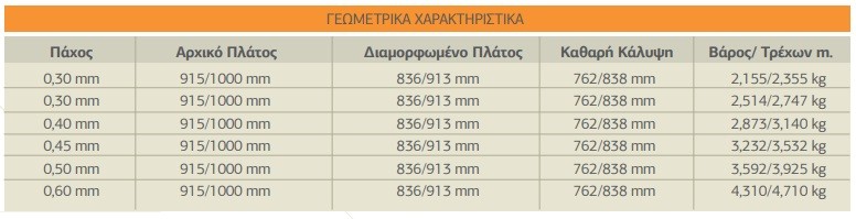 • Από χάλυβα S280 γαλβανισμένο εν θερμώ DX51D EN10143 ή Aluzinc η προβαμμένος με πάχος βαφής 5μm