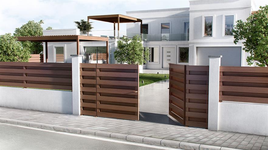 Ολοκληρωμένο σύστημα περίφραξης με minimal σχεδιασμό και μεγάλο εύρος επιλογών σε περσίδες και αυλόπορτα, το οποίο προσφέρει απλές λύσεις για κάθε χρήση και αισθητική. Βασικό χαρακτηριστικό είναι οι οριζόντιες περσίδες οι οποίες τοποθετούνται εξωτερικά της κολόνας, στη μία ή και τις δύο πλευρές.