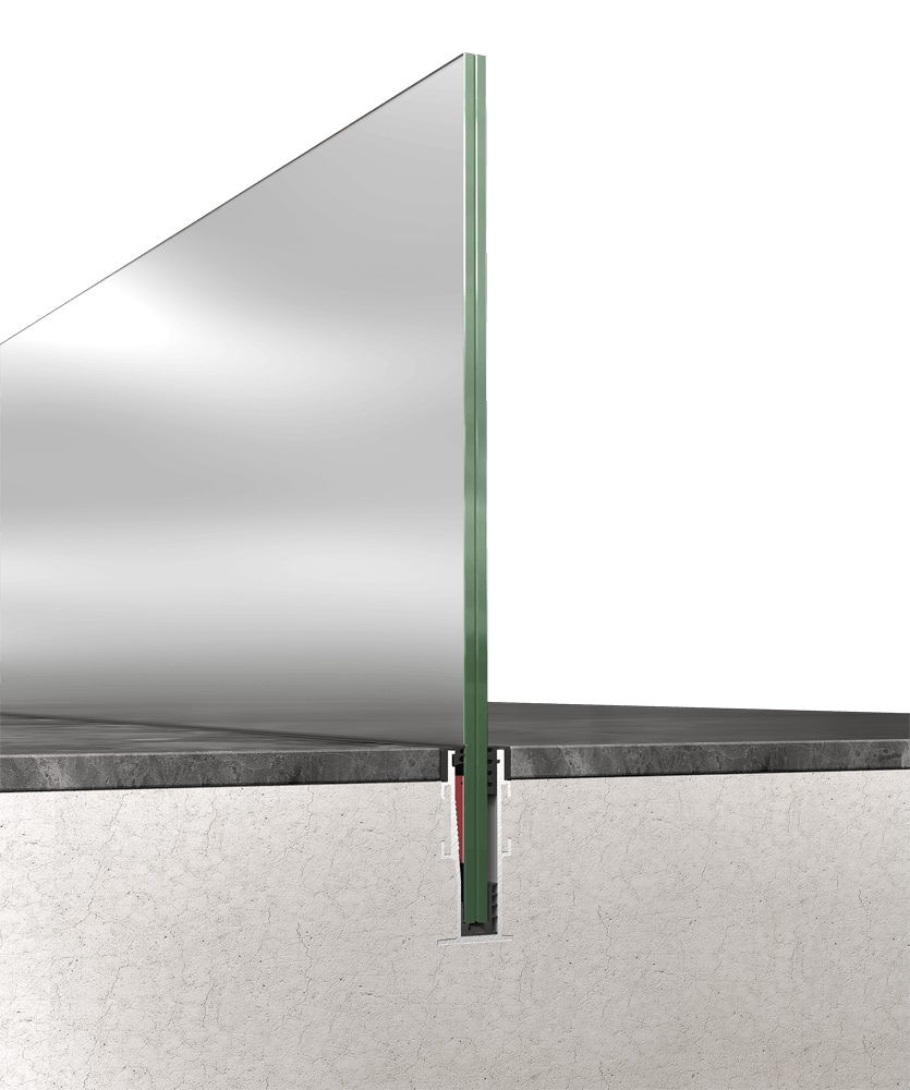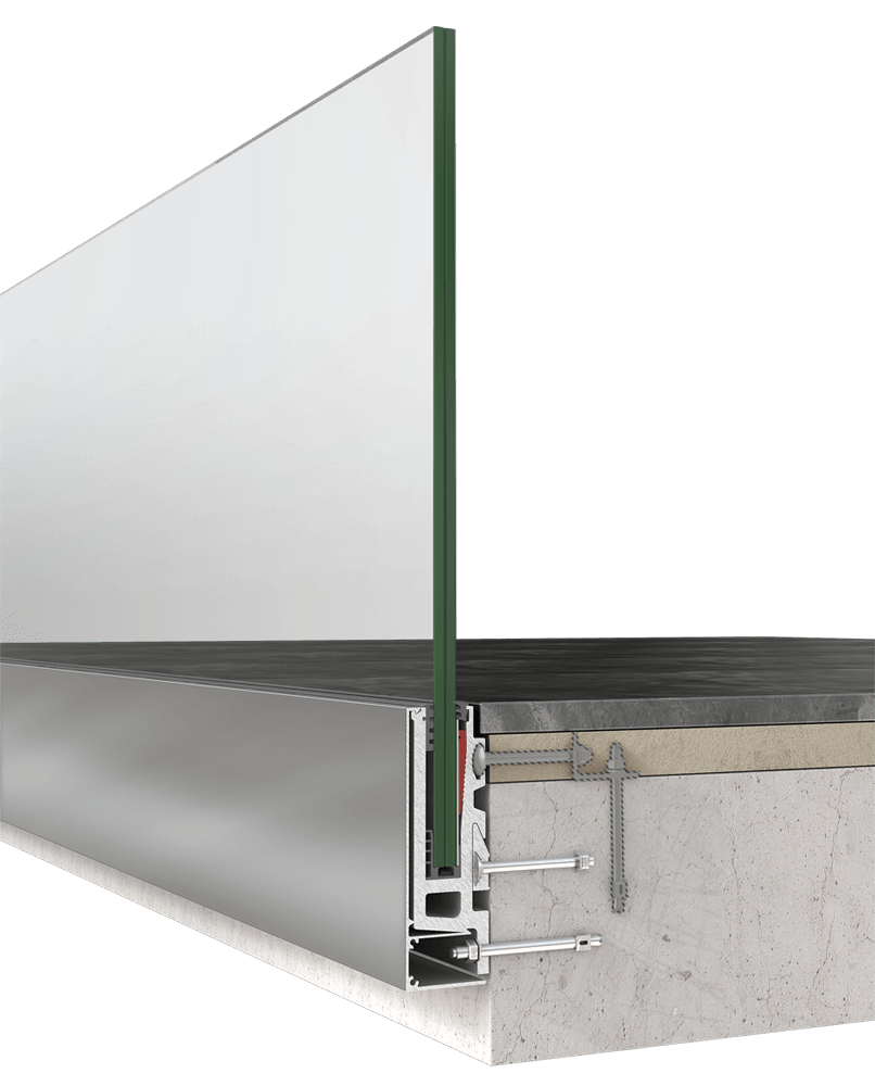 - Ενιαίο προφίλ για γυάλινες κατασκευές με ύψος έως και 1.2m Για υαλοπίνακα 8+8 ή 10+10mm triplex securit με τετραπλή μεμβράνη (χρήση ειδικού πλακίδιο 1.2mm στην περίπτωση Μονή μεμβράνη)