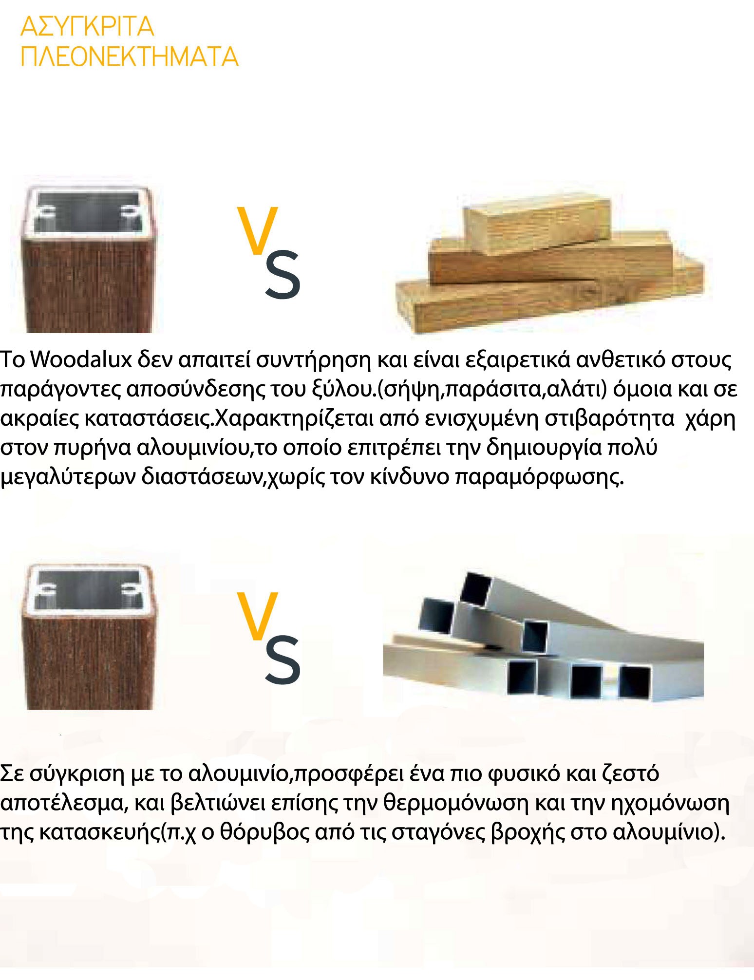 - Πιο φυσική και ζεστή αίσθηση σε αντίθεση με το αλουμίνιο σε απομίμηση ξύλου.